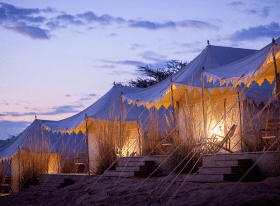 MANVĀR Sevan consists of 30 colourfully decorated, safari styled tents arranged in a circle.